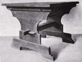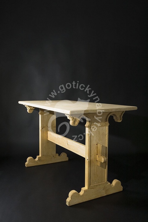 stůl, s posuvnou deskou, vyrobeno podle předlohy, ručně hodlováno